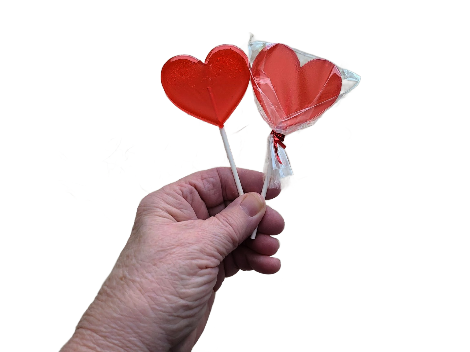 Hand‑poured in small batches, these 2" x 2 1/2" oversized heart lollipops are a sweet, simple treat made just for you. Each lot includes 12 handmade lollipops, crafted fresh to order with your choice of color and flavor.